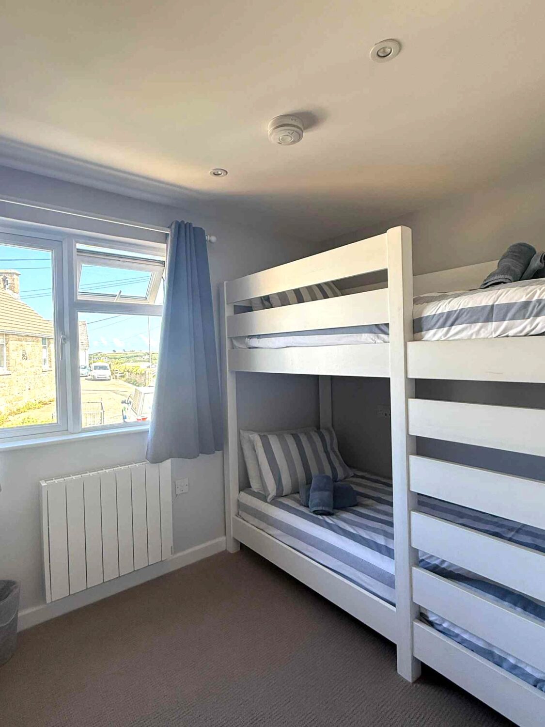 Sleeping a total of 7 people, the bedrooms include one ground floor super-king zip'link (which can be made up as twin beds) and a ground floor single. The master bedroom is king size, with new shower ensuite facilities. There is one bunk room with full size standard singles top & bottom. There is an upstairs family bathroom, (with shower over bath) and downstairs wc.